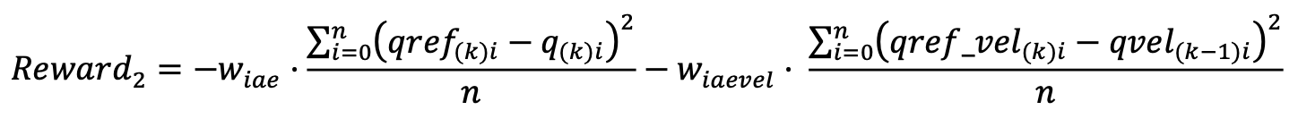 I also tried using a reward function, which rather than penalising the increment of the control action, it penalises the velocity error. However, this requires to have a good estimation of the velocity of joints of the robot.