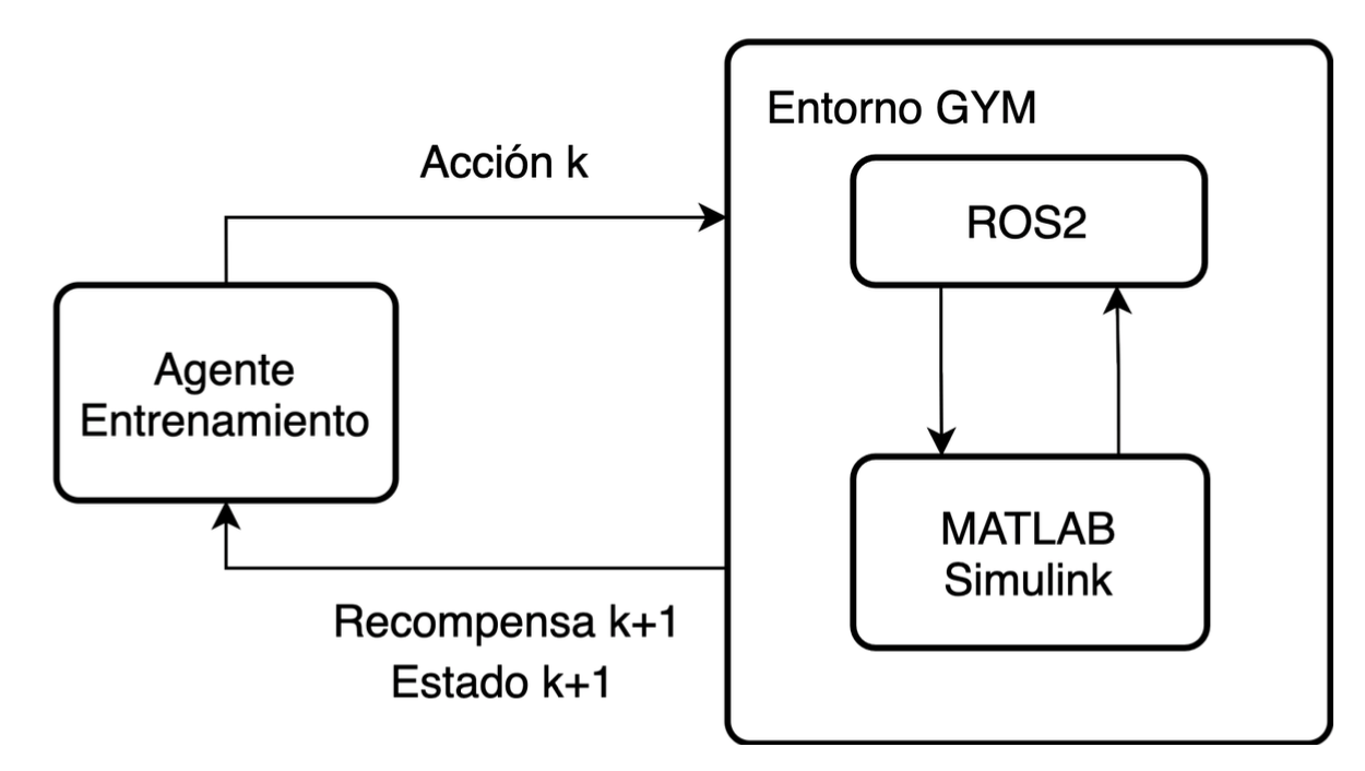 Because the simulation of the parallel robots were implemented in Simulink, I created an interface between ROS2 and Simulink and then I created a gym environment that works on top of this and works as an interface to the agent.