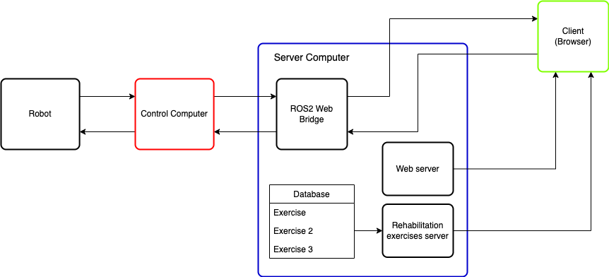 Rehabilitation exercises server: Provides a client with rehabilitation exercices. There is an API that interfaces between the client and the database that contains the exercises, which was implemented through NodeJS. -